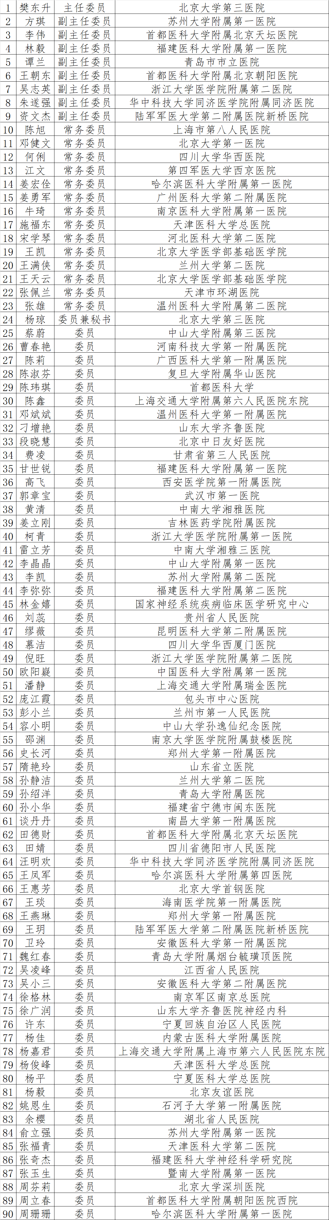 中国卒中学会遗传学分会2015年6月成立,第三届委员会于2025年7月成立。具体名单如下: