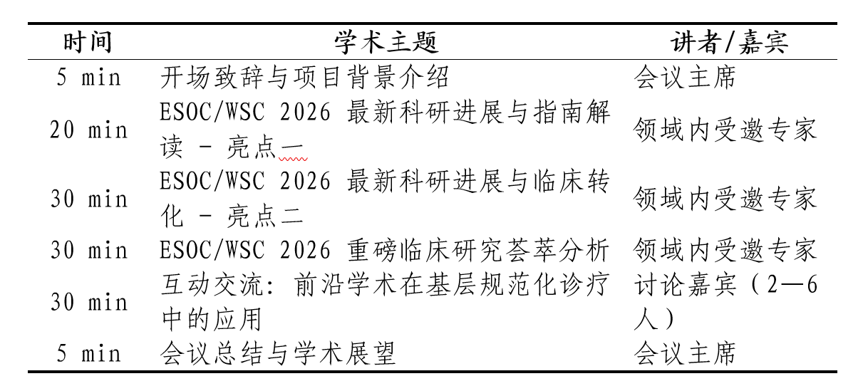 本项目将紧密围绕欧洲卒中组织大会(ESOC 2026,5月召开)与世界卒中大会(WSC 2026,10月召开)的核心学术成果,在国内核心城市开展6场学术传递活动,旨在将优质医疗资源向国内各级医院及基层下沉。